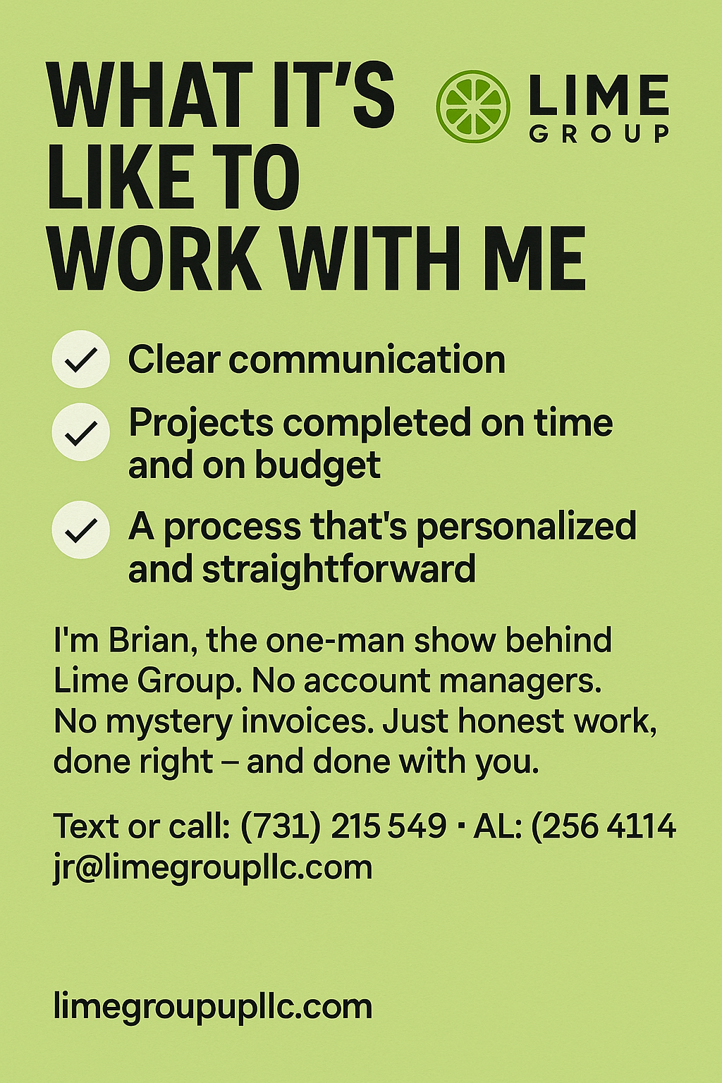At Lime Group LLC, there’s no team behind the curtain. It’s just me—Brian Williamson—with 20+ years of experience in web design, branding, digital strategy, and local SEO.
